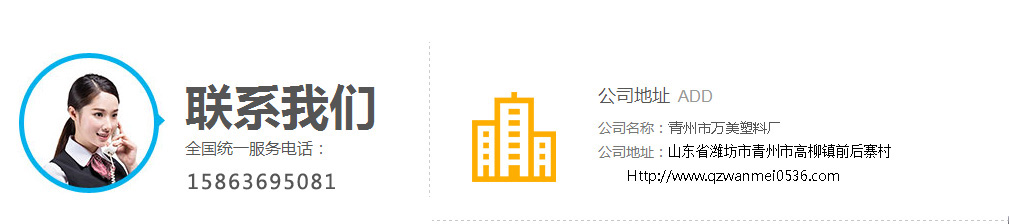 青州市万美塑料厂 地址:山东省潍坊市青州市高柳镇前后寨村 电话:0536-3592499 手机:15863695081